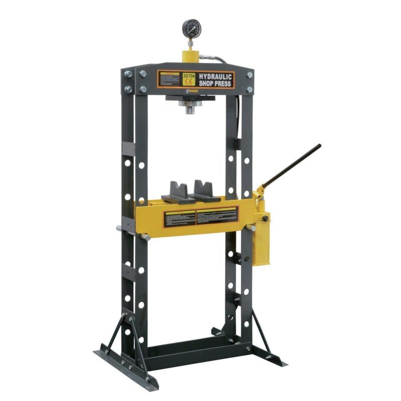 YD06-014 30トン ユーロ着脱式油圧ショッププレス(ゲージ付き)は、ヨーロッパスタイルのデザイン、高耐久性の耐荷重能力、精密な圧力制御を特徴とする工業グレードのデバイスです。スペースに制約のある中小規模のワークショップ向けに設計されており、ベアリングの圧入、金属の矯正、ワークピースの成形などの作業に優れています。